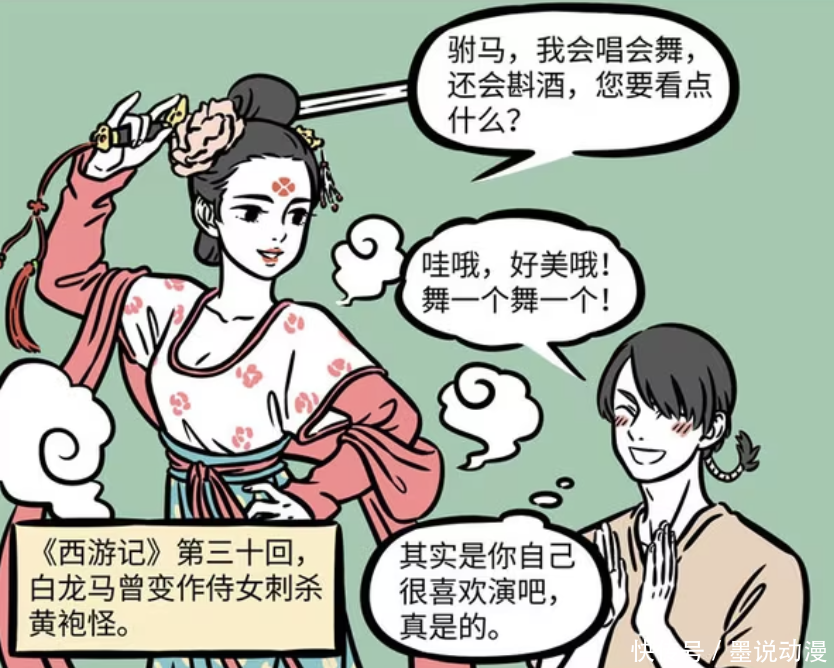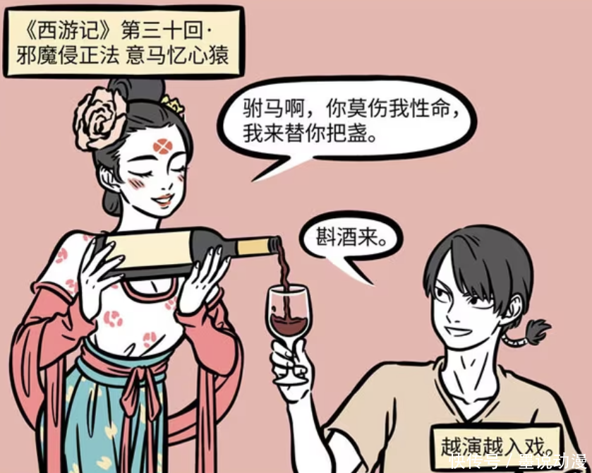 《非东说念主哉》漫画中,西游组四东说念主约会唱K后,猪八戒让敖烈造成好意思女,这在《西纪行》中但是有典故的。没念念到敖烈造成好意思女后那么顺眼,猪八戒酒喝多了之后,差点死亡。九月看不得这种画面,还吐槽两东说念主,在玩什么paly。