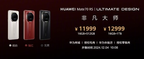华为Mate60 RS 超卓群众的价钱分散为11999元和12999元,二者价钱一致。