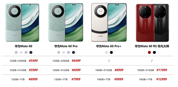 华为Mate60的内存版块一致,价钱分散为5499元、5999元、6999元。也即是说,华为Mate70价钱和上一代保捏一致。