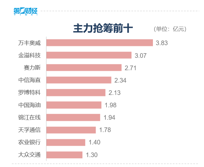 具体到个股来看,万丰奥威、罗博特科、金溢科技获净流入8.05亿元、5.67亿元、4.76亿元。净流出方面,贵州茅台、中芯国际、寒武纪永诀遭抛售4.41亿元、2.86亿元、2.00亿元。