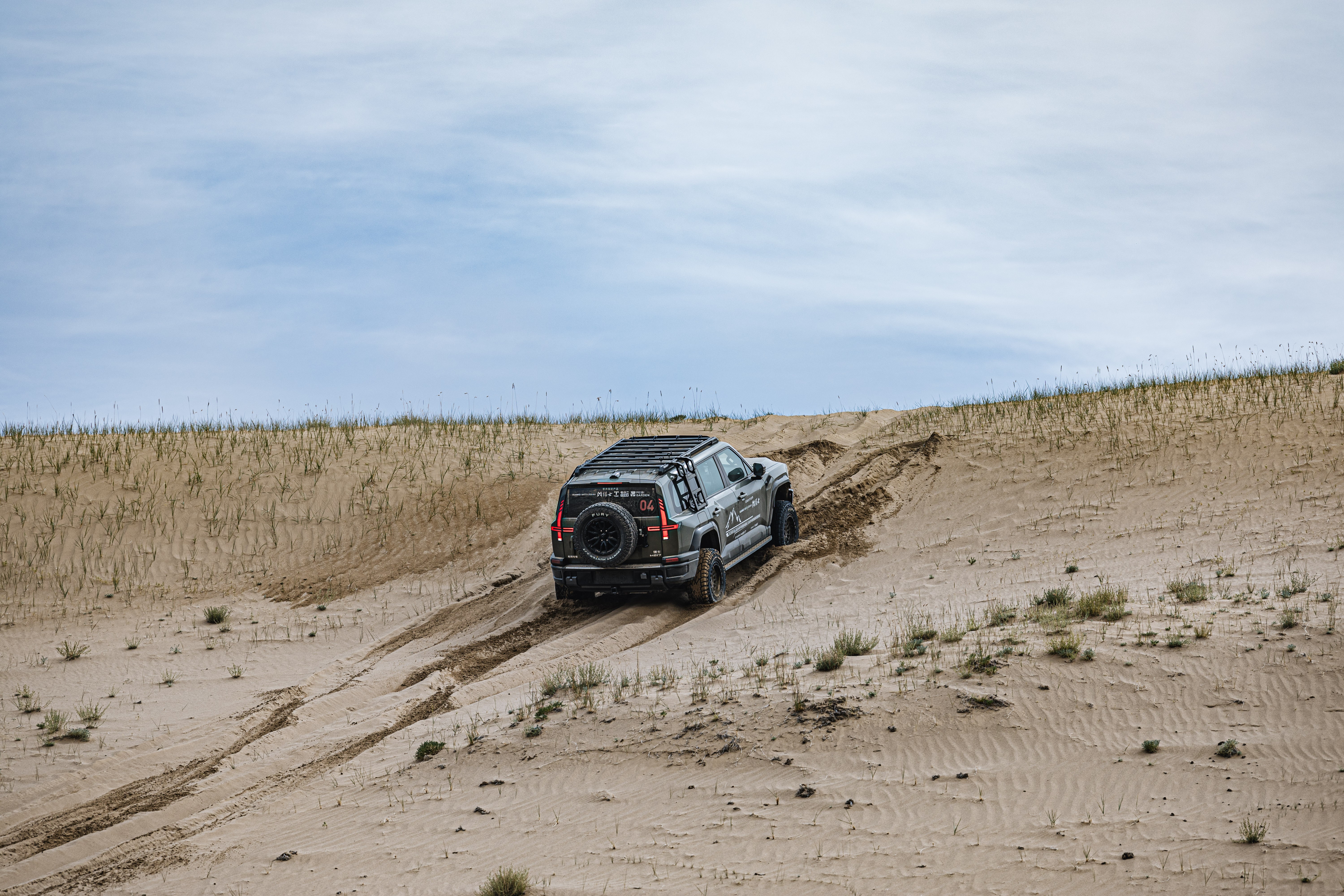 过问阿尔金山中枢区后,冻土区的险峻落差、池沼地的积水陷坑、沙漠旯旮的松软沙地,共同组成对车辆越野性能的“终极老练”。而猛士M817的“全域邃晓”实力,在此刻展现得大书特书,150mm险峻可调空气悬架可最大进取升高105mm,搭配333mm最小离地错误,能淘气高出冻土了得、碎石窒碍,通过性平直拉满;猛士智能E锁更能在1秒内完成四轮转速同步,而双电机协同落幕,快速将扭矩分拨到不打滑的车轮,固然在池沼地出现车轮陷滑景象,但作念到赶快脱困、无惧前行;900mm最大涉水深度则让队员无需绕行,安适穿越积水路段。对此,随队科研东说念主员评价称:“猛士M817的全地形通过性与可靠性,是团队不行或缺的蹙迫保险。在叮属阿尔金山极点复杂的表象与路况时,扫数车辆均发达出色、全程无任因何障,其踏实性能为咱们攻坚克难筑牢了坚实基础。”