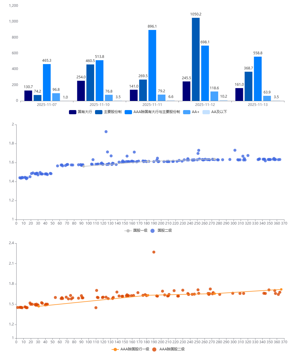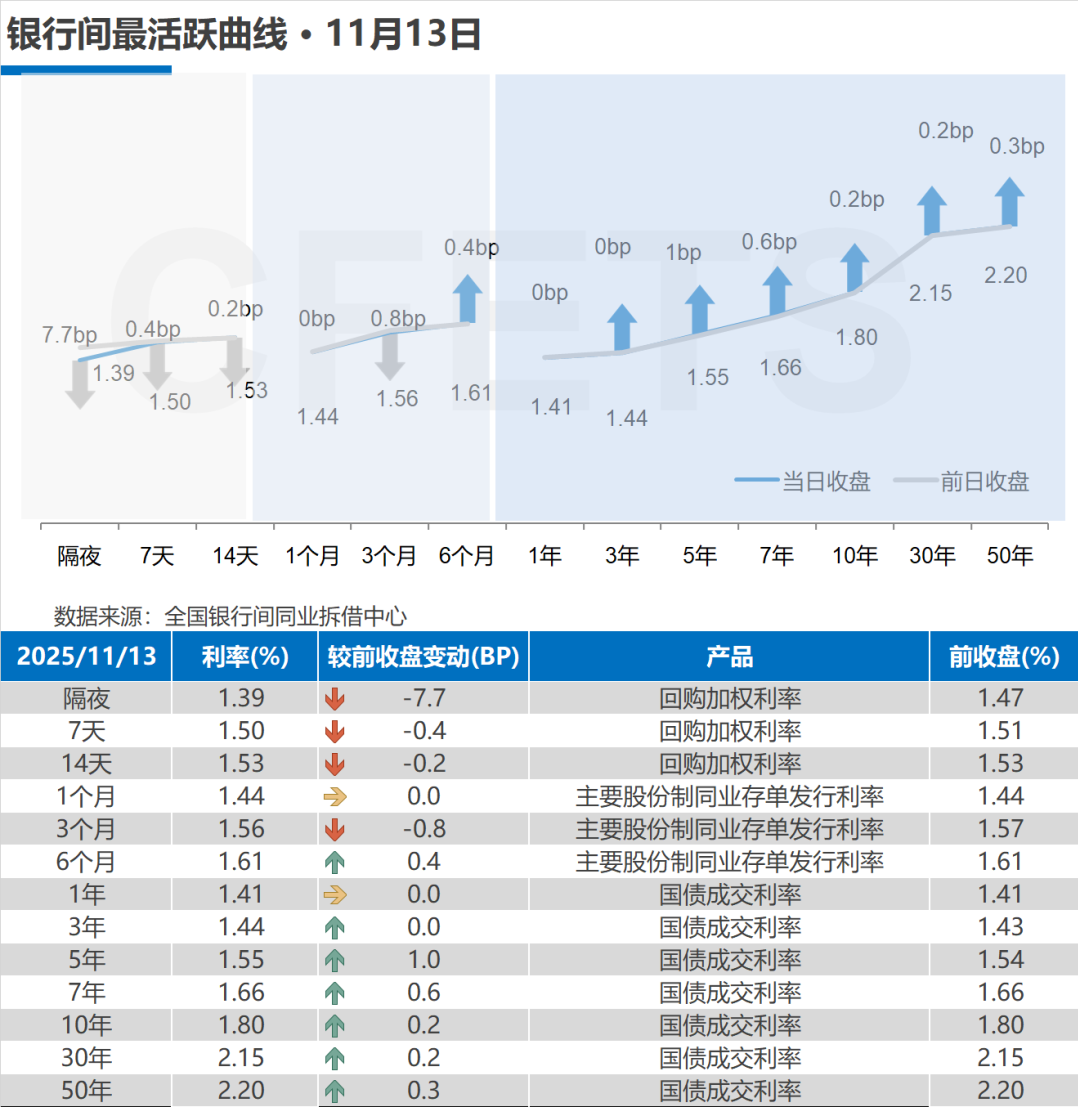 利率互换成交量为1539.2亿元,较前日减少13.7%。