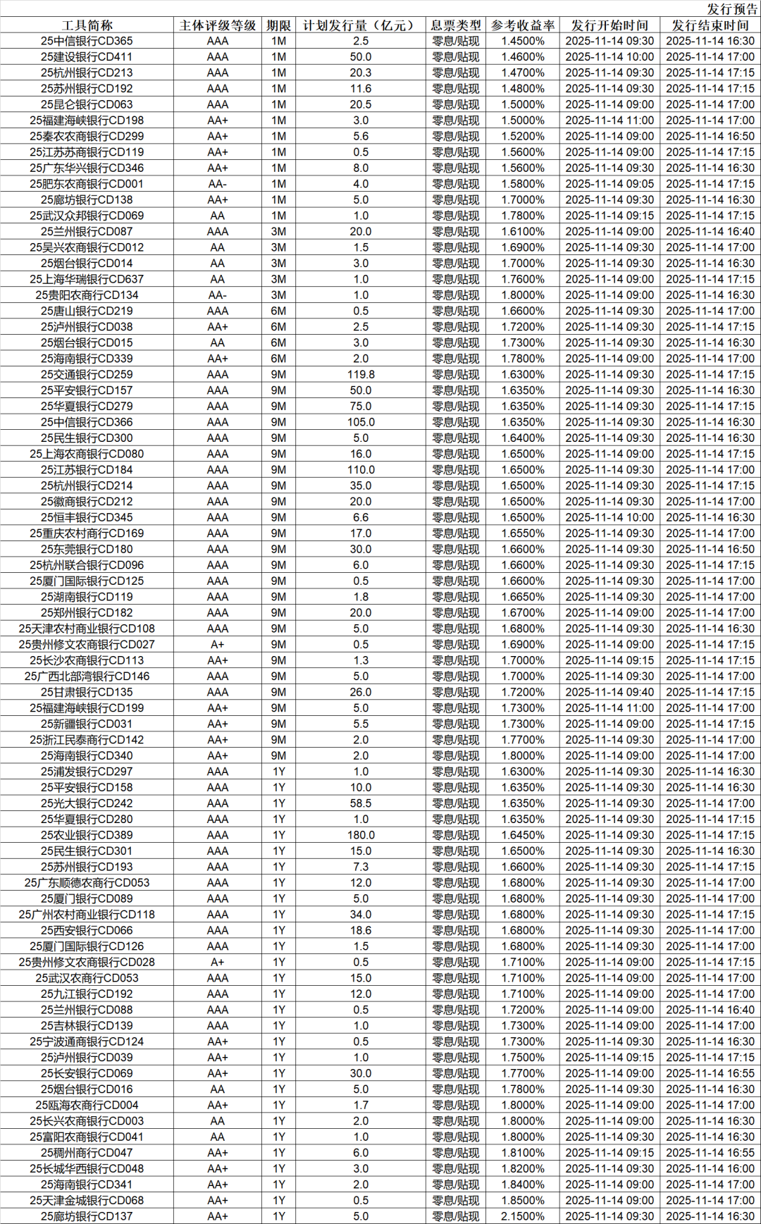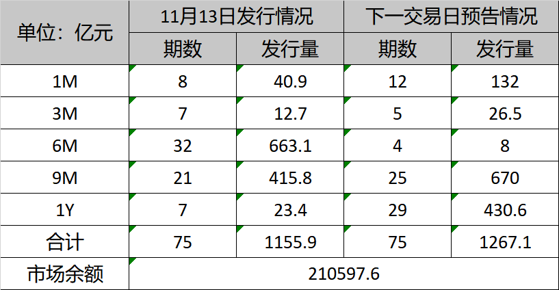 同行存单刊行75只,刊行量1155.9亿元,较前日减少966.7亿元。