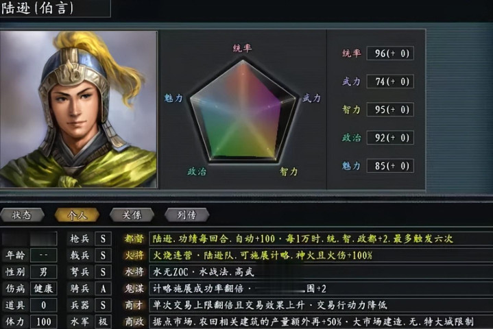 更有像陆逊登场这么的剧情,除了要求他自己事迹达标,还得确保他没和某些武将同处一城,吴国几位元老级大将必须处于过世状态,一系列终端条目让不少玩家玩到通关都没能触发。