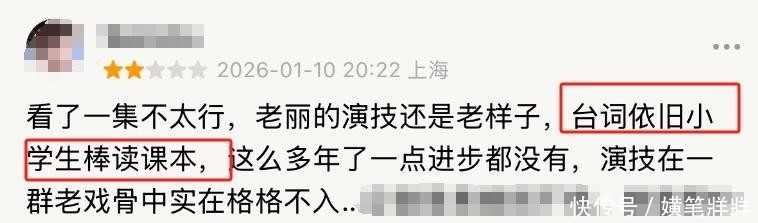 当先是台词处理,这一直是她的薄弱措施,在稠密老戏骨环绕下更显扞格难入。