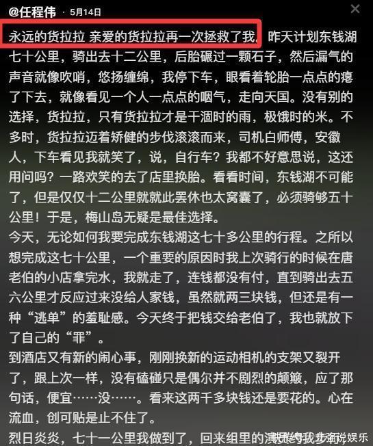 有次车坏了还被货车司机救援,他有意发视频感谢,这样接地气的演员真未几见。