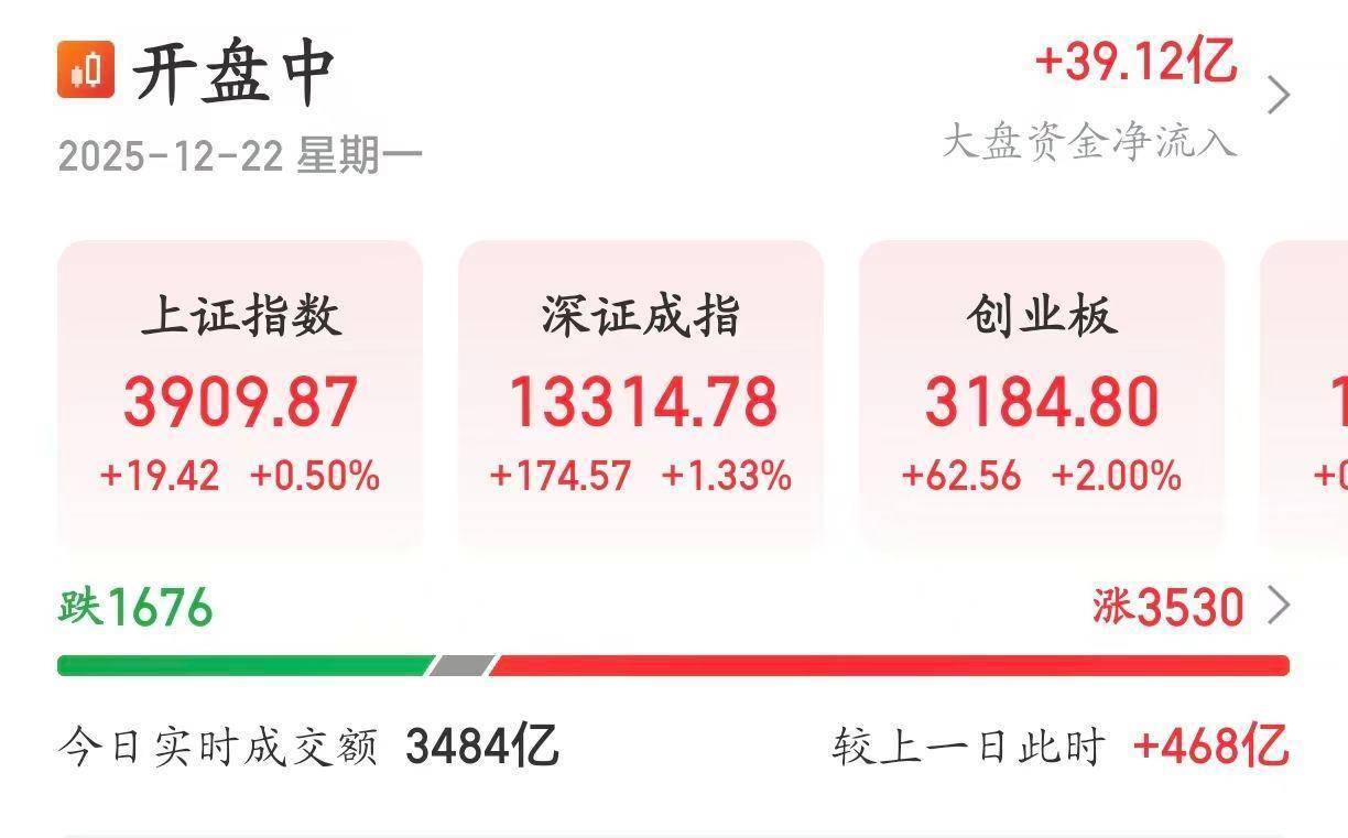 【大河财立方音书】12月22日,A股跳空高开,冒昧3900点。