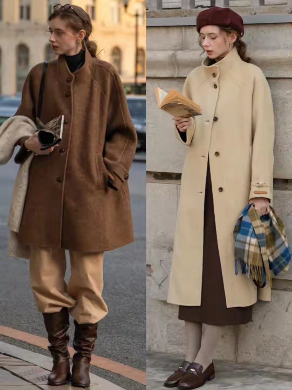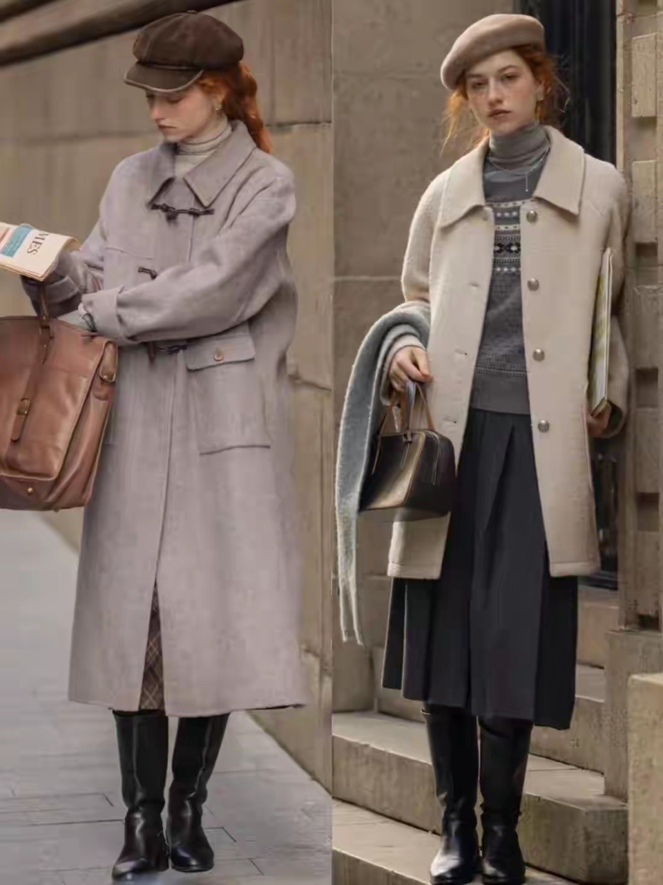 我方明明亦然穿的最为基础的灰色大衣外衣,但为何够不上别东说念主穿出来的理思完了?这就触及到若何选拔相宜我方身段的衣服版型了,比如底下这两件灰色大衣外衣,一件作念了一个高腰收腰的蓄意,而右边的这一件灰色大衣外衣腰间的位置还往外扩了少许,显得悉数东说念主臃肿臃肿。