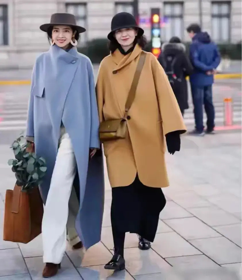 其实大衣外衣就可以达到御寒本心的完了,但我们选拔的衣服心思和项目过于老旧,穿在身上就会像底下这两位中年女性同样,显得村炮感齐全,无法普及举座造型的档次。